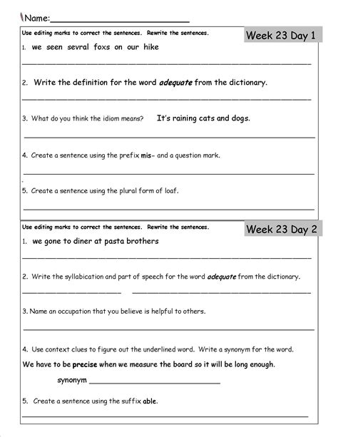 Week One 3Rd Grade Day Language Worksheets.